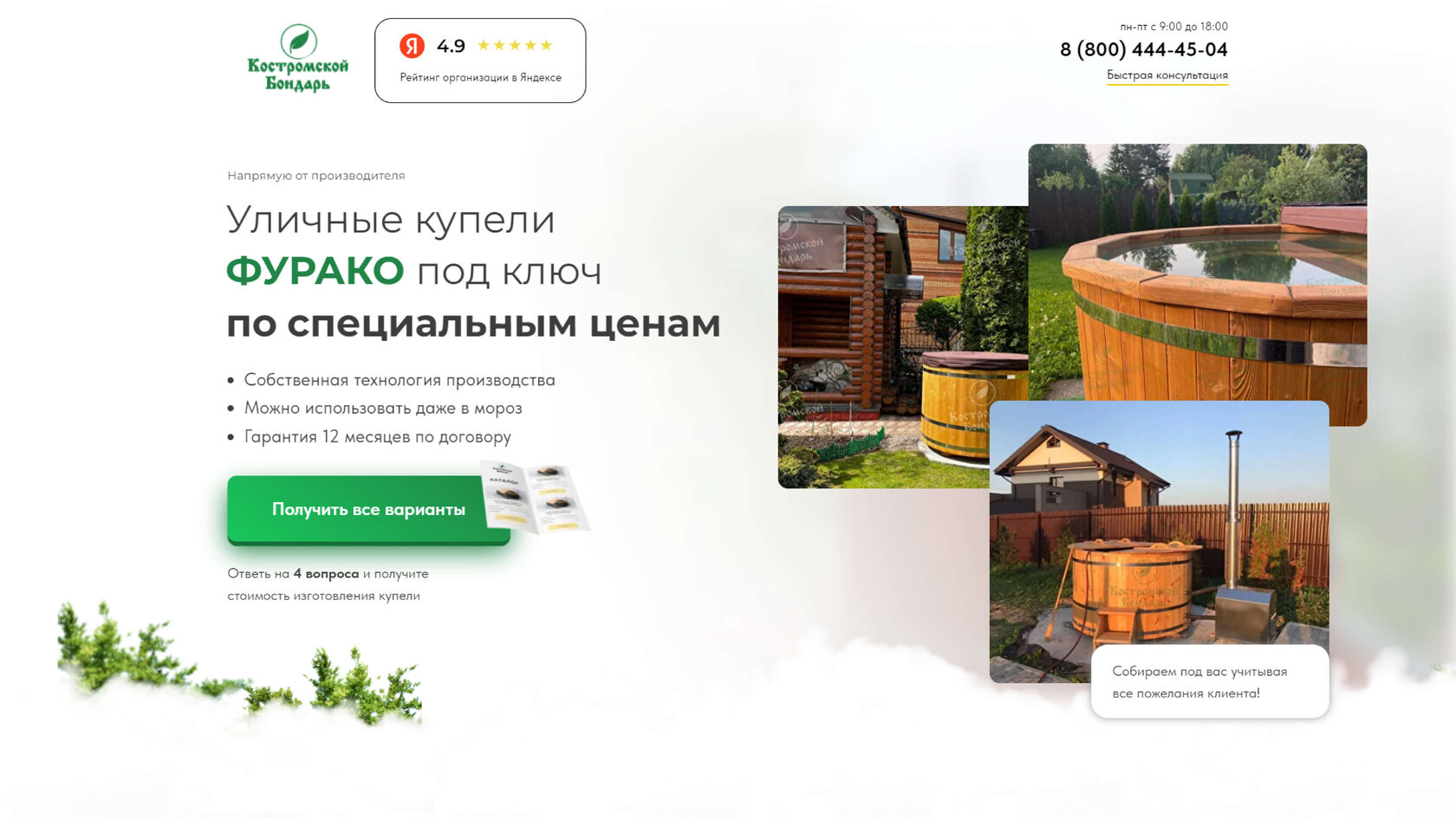 Разработали структуру сайта так, чтобы акцентировать внимание на ключевых преимуществах купелей и сделать ассортимент легко доступным для изучения