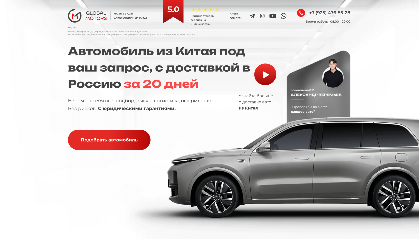 Добавили снимки авто и основателя компании, чтобы сайт выглядел не как шаблон, а как витрина реального бизнеса с живыми людьми за ним